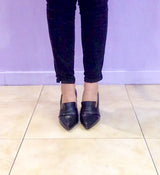 This elegant pointed-toe wedge loafer reflects the signature design of our luxury shoe line. Its sophisticated silhouette and classic tones offer a timeless appeal that adds style and sophistication to your look.